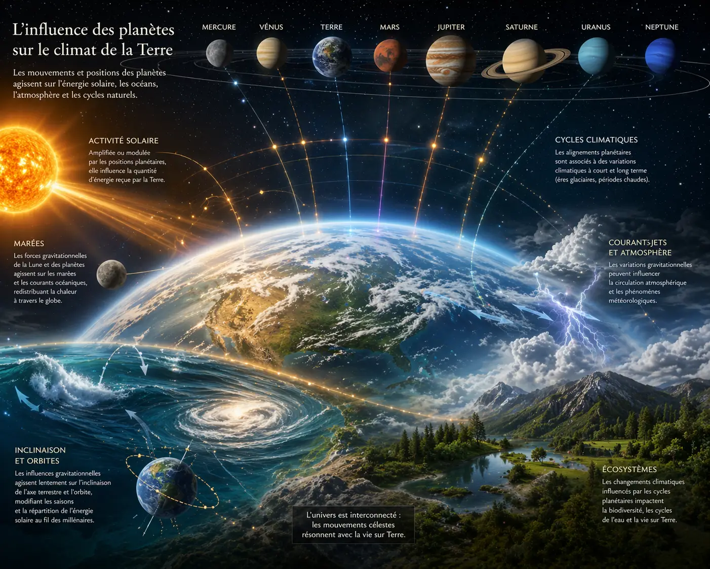 Un véritable langage vibratoire, un “solfège cosmique” où chaque planète émet une influence subtile, venant moduler le climat et les dynamiques du vivant tout au long de l’année.