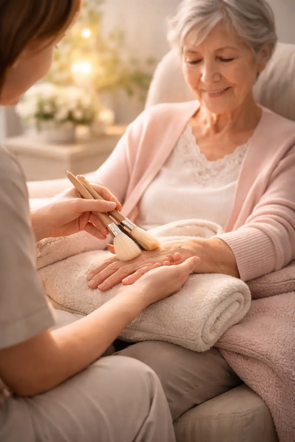 Ce soin est une approche sensorielle, humaine et profondément apaisante, destinée à accompagner les personnes fragilisées, en douleur ou en fin de vie. Il apporte chaleur, tendresse et présence, sans avoir besoin de mots.